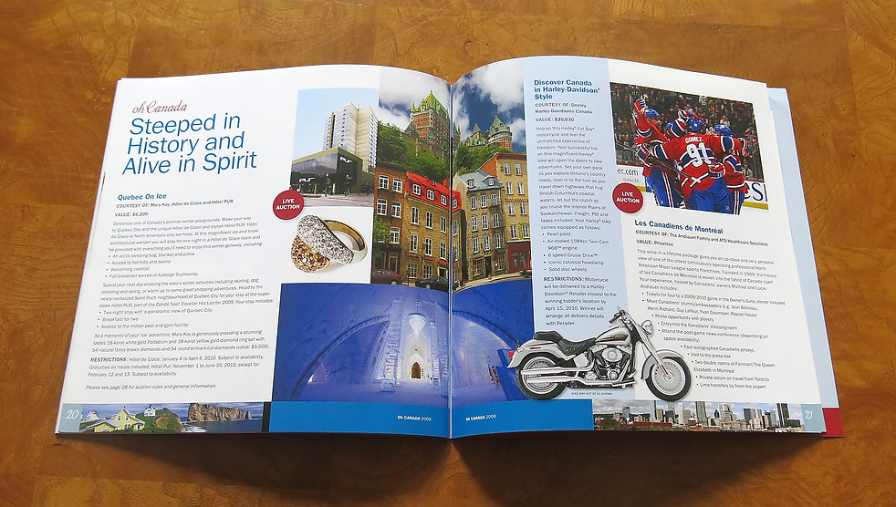 SOLUTION: A strong red and white colour palette with inviting stock photography brought the theme to life in all print collateral including invitations, evening program, silent auction book and on-site signage. Also used as inspiration for event decor.